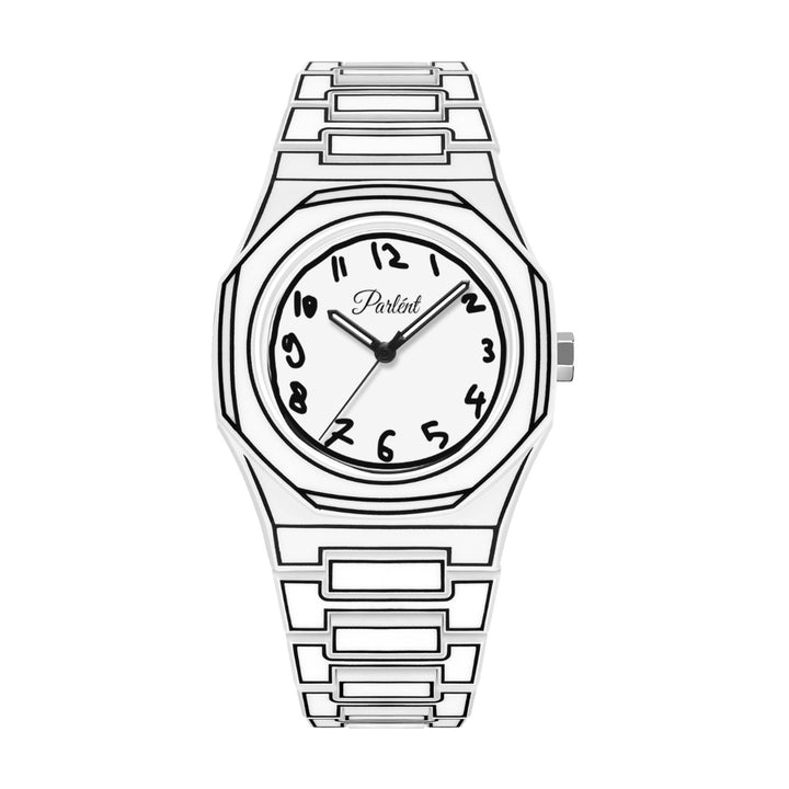 Palladium Sketch Quartz is powered by a Japan PC21 Movement with a 40MM diameter. Green luminous hands offer clear visibility in the dark. Featuring a unique and trendy polycarbonate strap, it's lightweight and perfect for daily wear.